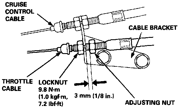 6. Turn the adjusting nut until it is 3 mm (1/8 in.) away from the cable bracket.
