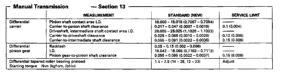 S2A8 5-spd M/T, Differential Measurement: