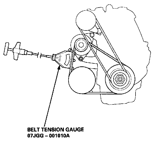2. Attach the belt tension gauge to the belt and measure the tension. Follow the gauge manufacturer's instructions.