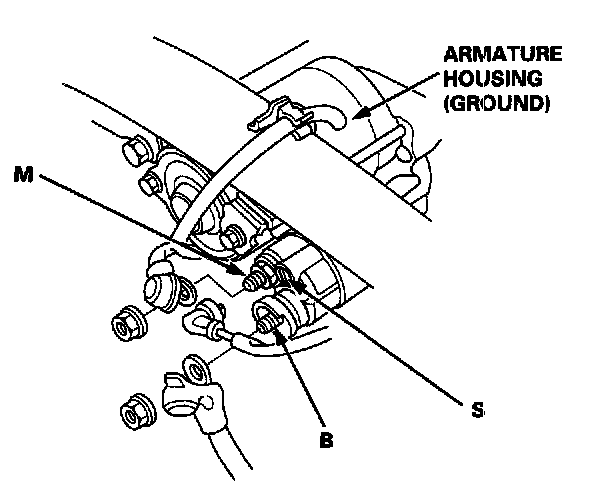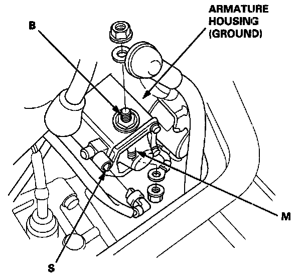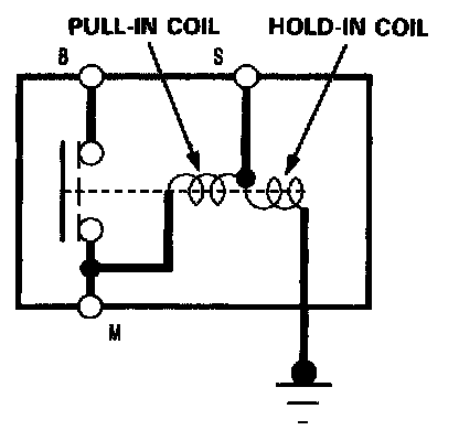 1. Check the hold-in coil for continuity between the S terminal and the armature housing (ground). The coil is OK if there is continuity.
