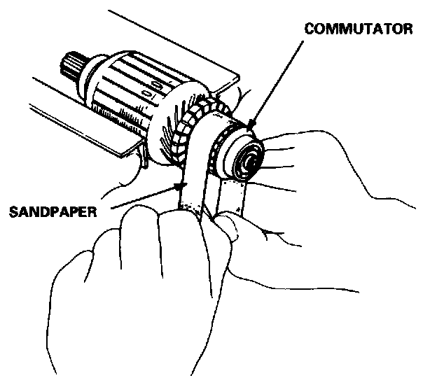 NOTE: To seat new brushes after installing them in their holders, slip a Strip of #500 or #600 sandpaper, with the grit side up, over the commutator, and smoothly rotate the armature. The contact surface of the brushes will be sanded to the same contour as the commutator.