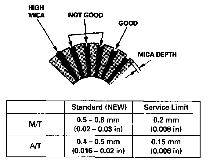 - If commutator diameter is below the service limit, replace the armature.