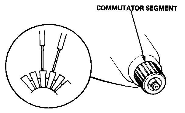 5. Check for continuity between the segments of the commutator. If an open circuit exists between any segments, replace the armature.