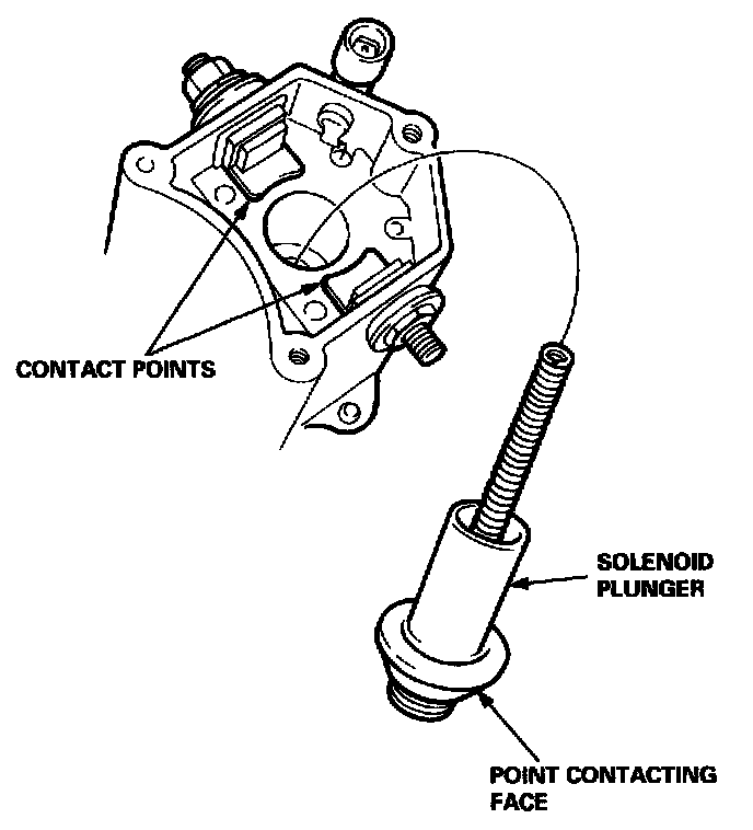 Check the contact points and the face of the starter solenoid plunger for burning, pitting or any other defects. If surfaces are rough, recondition them with a strip of #500 or #600 sandpaper.