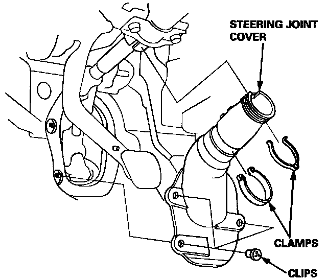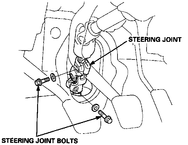 6. Remove the steering joint bolts, then disconnect the steering joint by moving the joint toward the column.