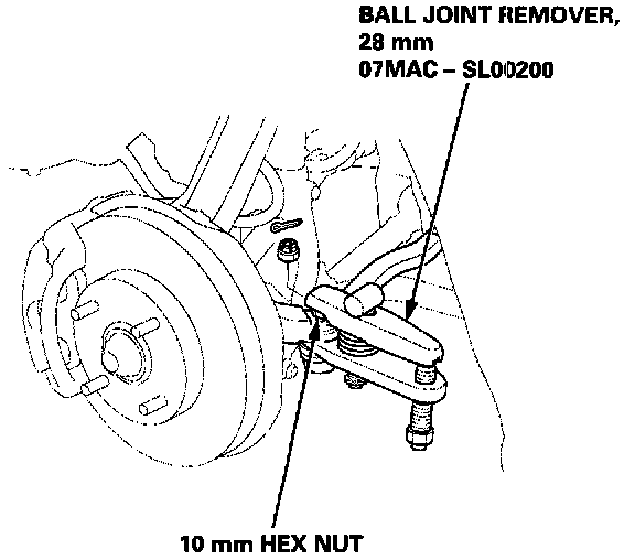 8. Install the 10 mm hex nut on the ball joint. Be sure that the 10 mm hex nut is flush with the ball joint pin end, or the threaded section of the ball joint pin might be damaged by the special tool.