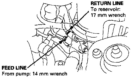 14. Disconnect the two lines from the valve body unit on the steering gearbox.