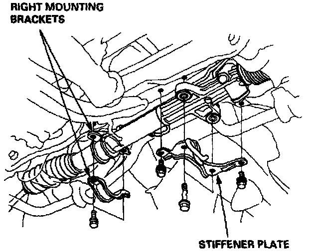 17. Move the steering gearbox to the right so the left rack end clears the rear beam.