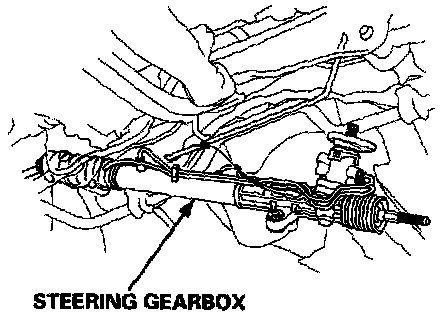 CAUTION: Be careful not to bend or damage the two power steering lines and cylinder lines when removing the gearbox.