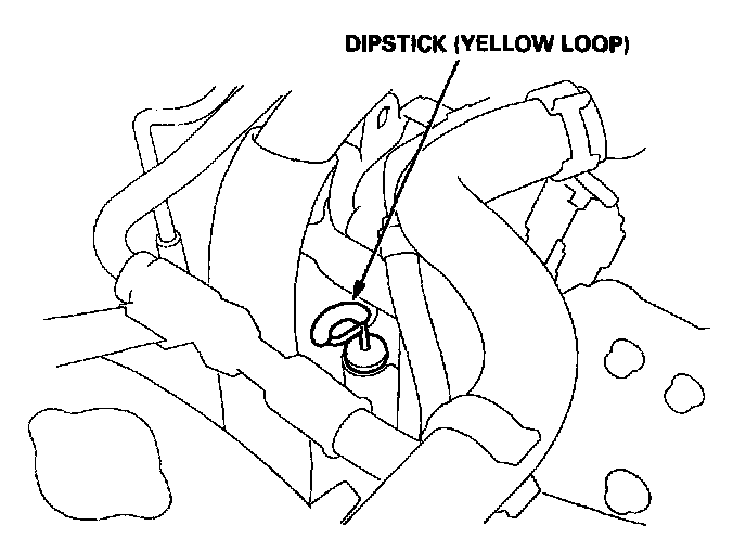 3. Remove the dipstick (yellow loop) from the transmission, and wipe it with a clean cloth.