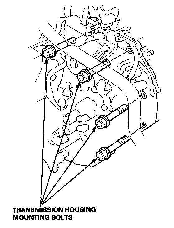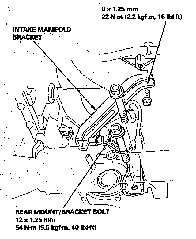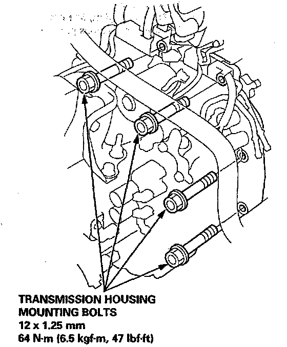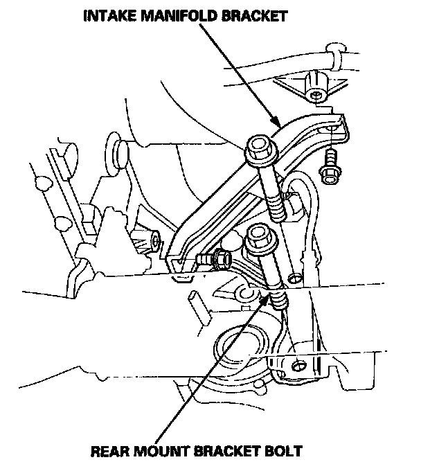 6. Attach the transmission to the engine, then install the rear mount/bracket bolts and intake manifold bracket bolts.