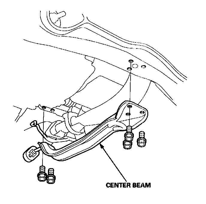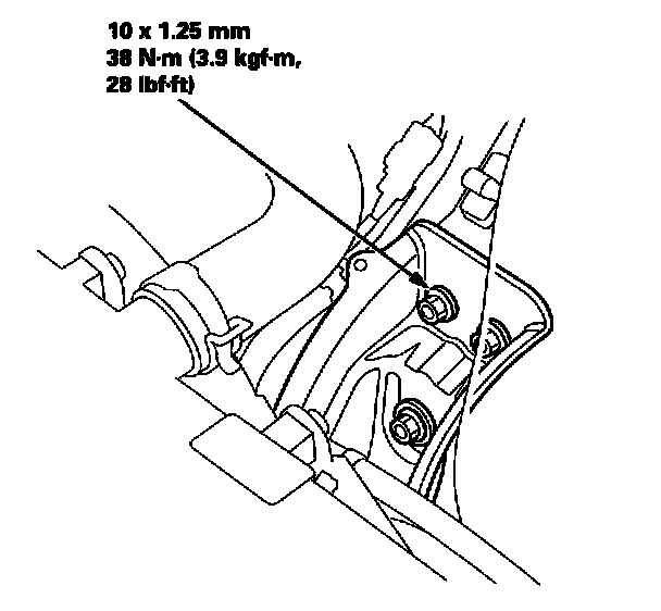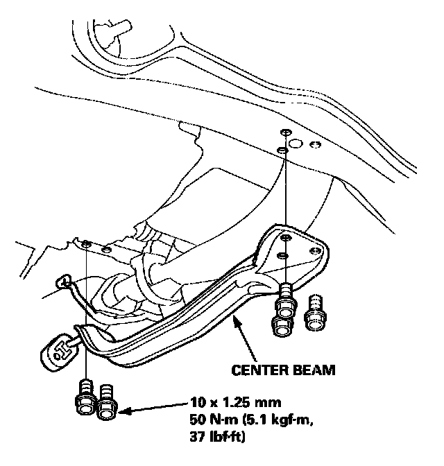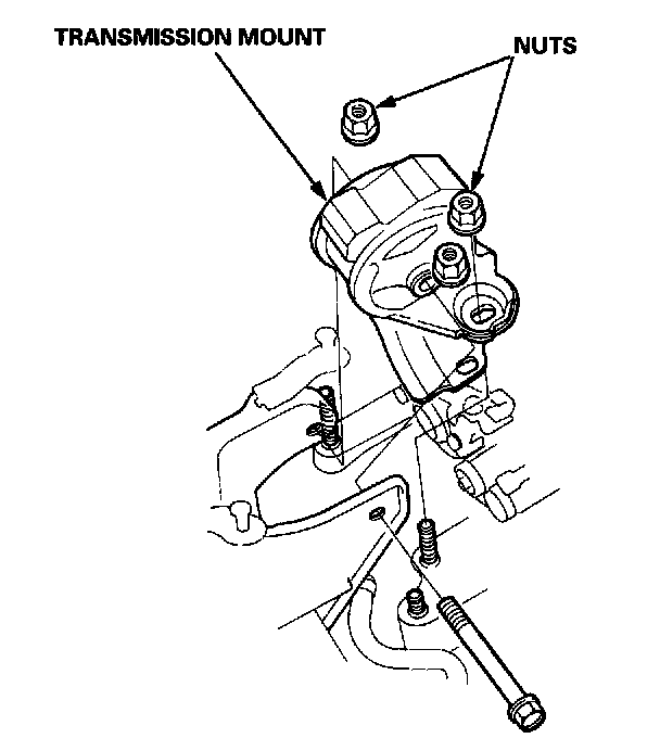 9. Install the transmission mount. Tighten the bolt loosely, and tighten the nuts to the specified torque, then tighten the bolt to the specified torque.