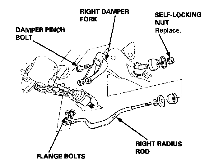 24. Remove the bolts securing the radius rods, then separate the radius rods from the lower arms.