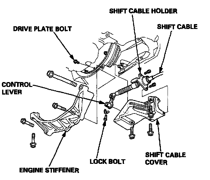 NOTE: To prevent damage to the control lever joint, remove the bolts securing the shift cable holder before removing the bolts securing the shift cable cover.