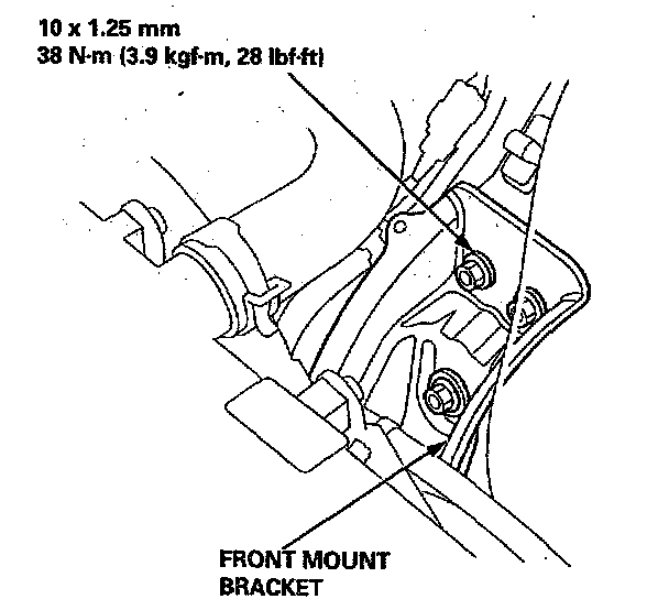 48. Loosen the front mount bracket bolts after the road test, then retighten the bolts to the specified torque.