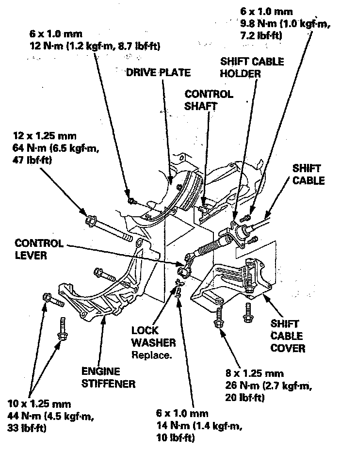 NOTE: To prevent damage to the control lever joint, be sure to install the shift cable holder after installing the shift cable cover to the torque converter housing.