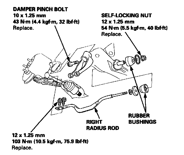 NOTE: Check radius rod rubber bushings for deterioration and damage.