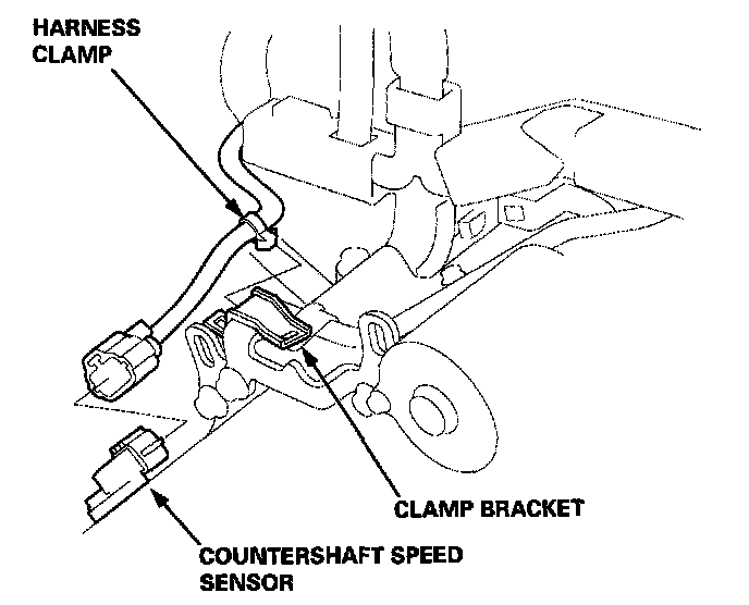 13. Disconnect the countershaft speed sensor connector, and remove the harness clamp from the clamp bracket.