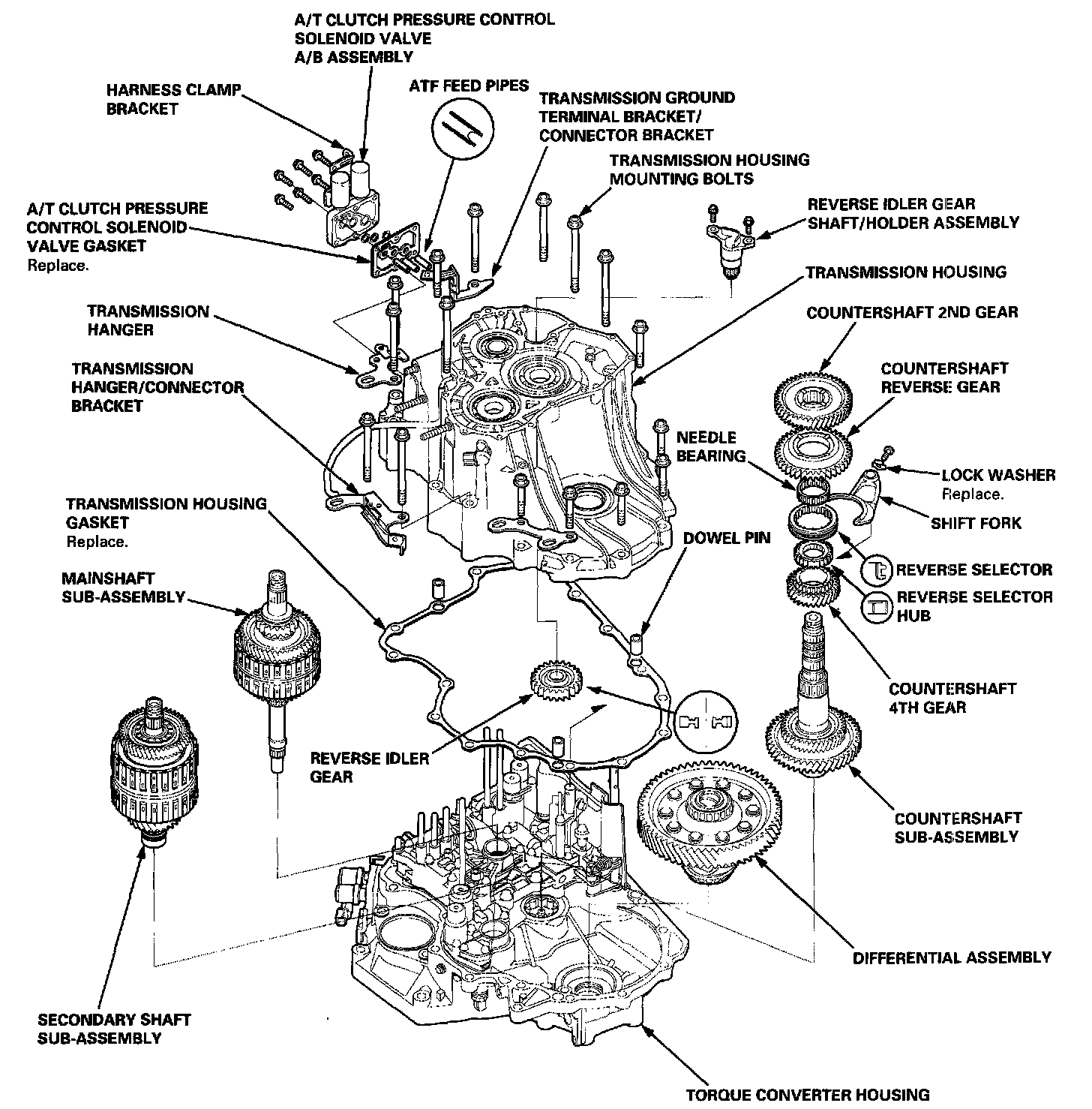 NOTE: The transmission housing will not separate from the torque converter housing if the reverse idler gear is not moved.