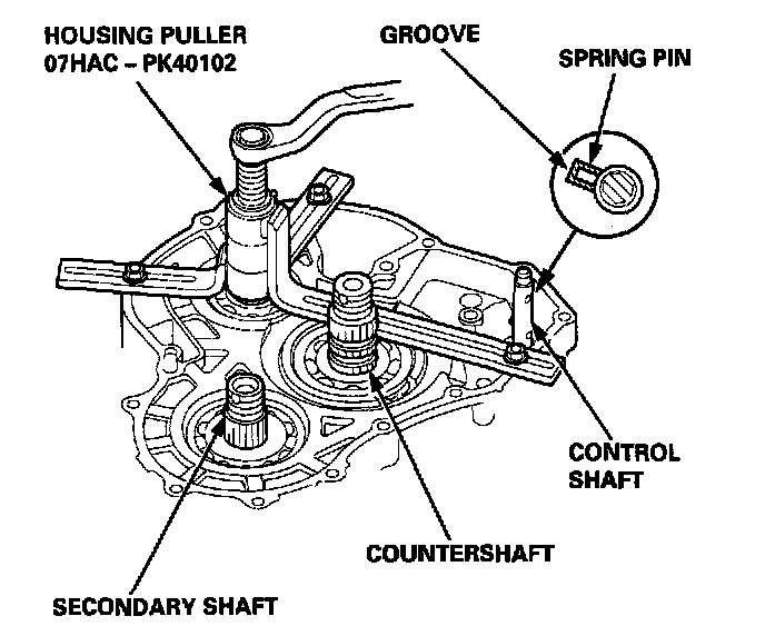 5. Align the spring pin on the control shaft with the transmission housing groove by turning the control shaft.