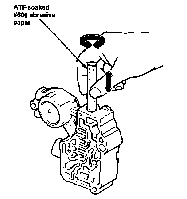 4. Roll up half a sheet of ATF-soaked #600 paper and insert it in the valve bore of the sticking valve. Twist the paper slightly, so that it unrolls and fits the bore tightly, then polish the bore by twisting the paper as you push it in and out.