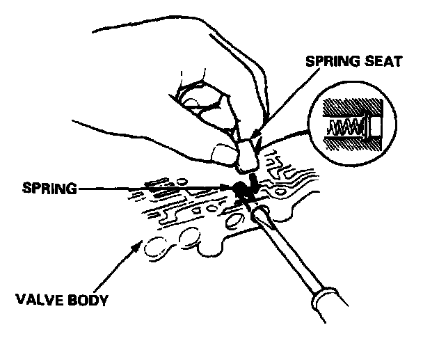 Set the spring in the valve, then install it in the valve body. Push the spring in with a screwdriver, then install the spring seat.