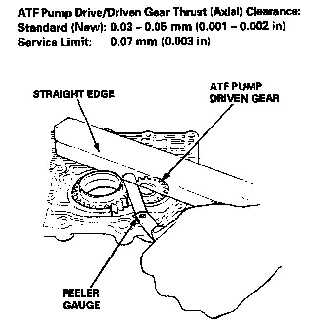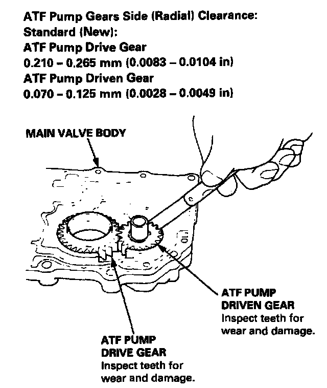 2. Measure the side clearance of the ATF pump drive and driven gears.