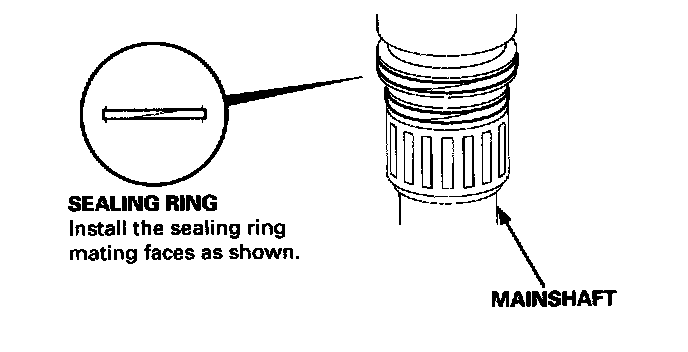 The sealing rings on the mainshaft are synthetic resin with chamfered ends. Check the condition of the sealing rings, and replace them only if they are worn, distorted, or damaged.