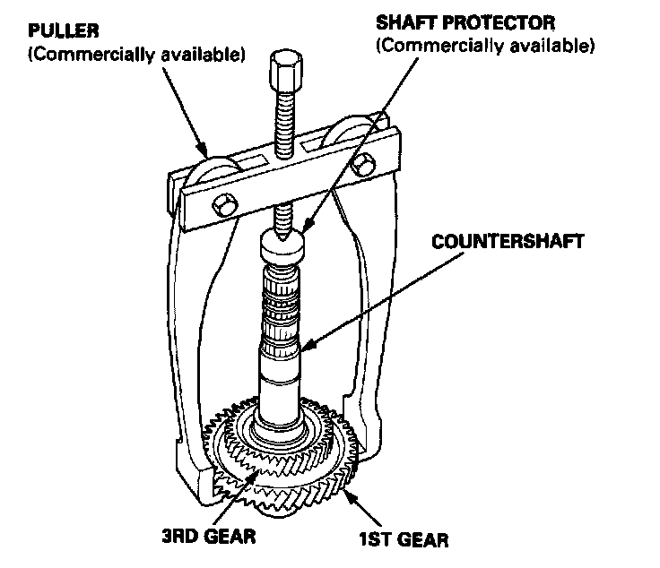 - Place a shaft protector between the puller and countershaft to prevent damage to the countershaft.