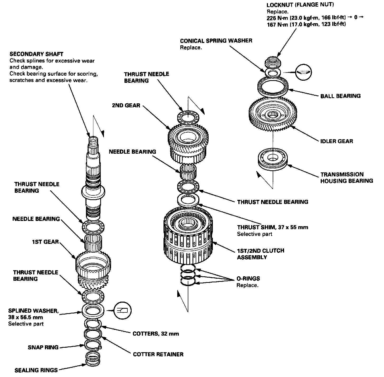 - Clean the old locknuts; they are used to install the press fit idler gears on the mainshaft and secondary shaft, and the park gear and bearing hub on the countershaft.