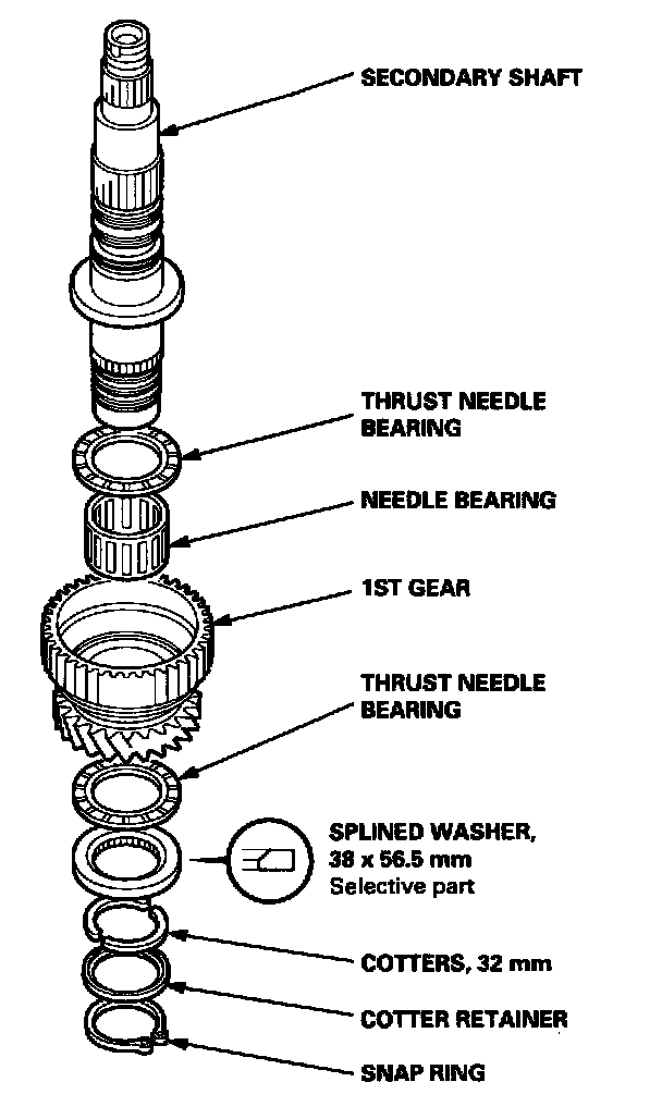 6. Remove the 27 x 47 x 5 mm thrust washer from the mainshaft.