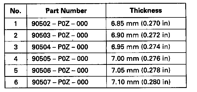 5. After replacing the thrust shim, make sure the clearance is within standard.
