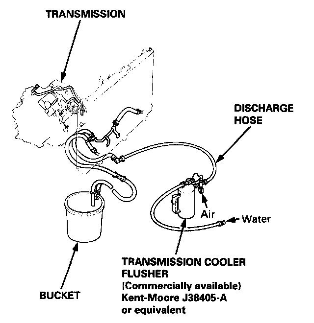 16. Install the transmission, and leave the drain hose attached to the cooler line.