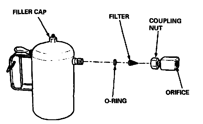 3. Secure the flusher filler cap, and pressurize the flusher with compressed air to 550 - 829 kpa (5.6 - 8.45 kgf/c M2, 80 - 120 psi). The air line should be equipped with a water trap to ensure a dry air system.