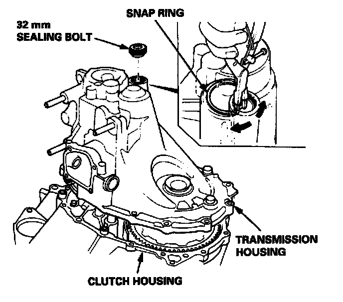 - If the transmission housing or clutch housing are replaced, the bearing preload must be adjusted.
