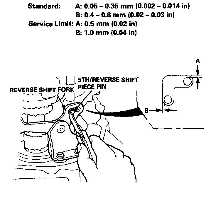 1. Measure the clearances between the reverse shift fork and 5th/reverse shift piece pin.