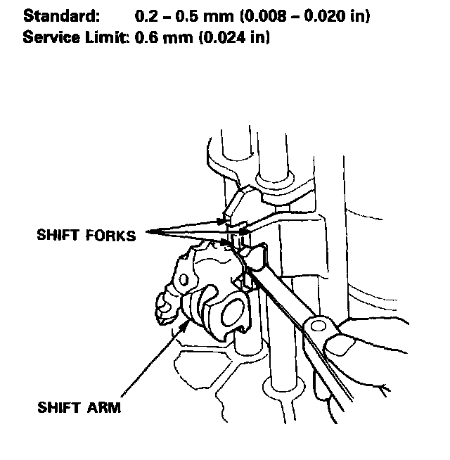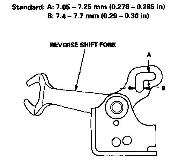 2. If the clearances are more than the service limit, measure the widths of the groove in the reverse shift fork.