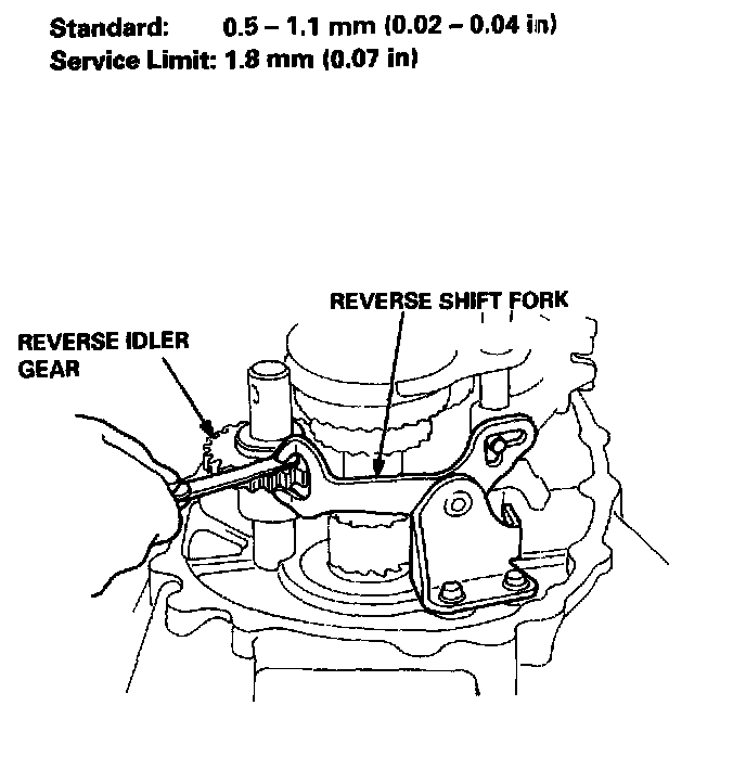 3. Measure the clearance between the reverse idler gear and reverse shift fork.