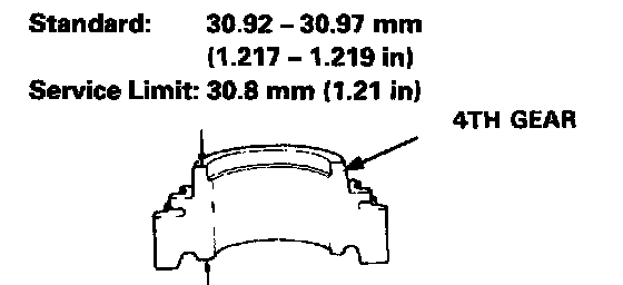 - If the thickness of 4th gear is less than the service limit, replace 4th gear with a new one.