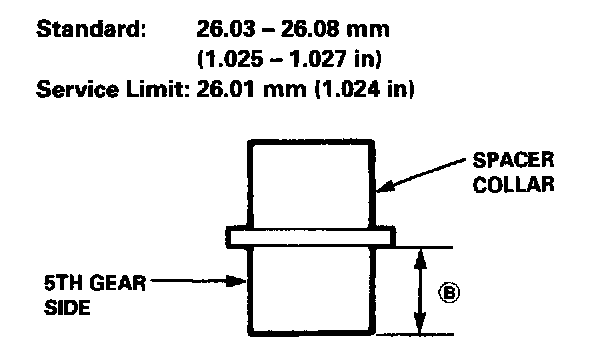 5. If the clearance is more than the service limit, measure distance on the spacer collar.
