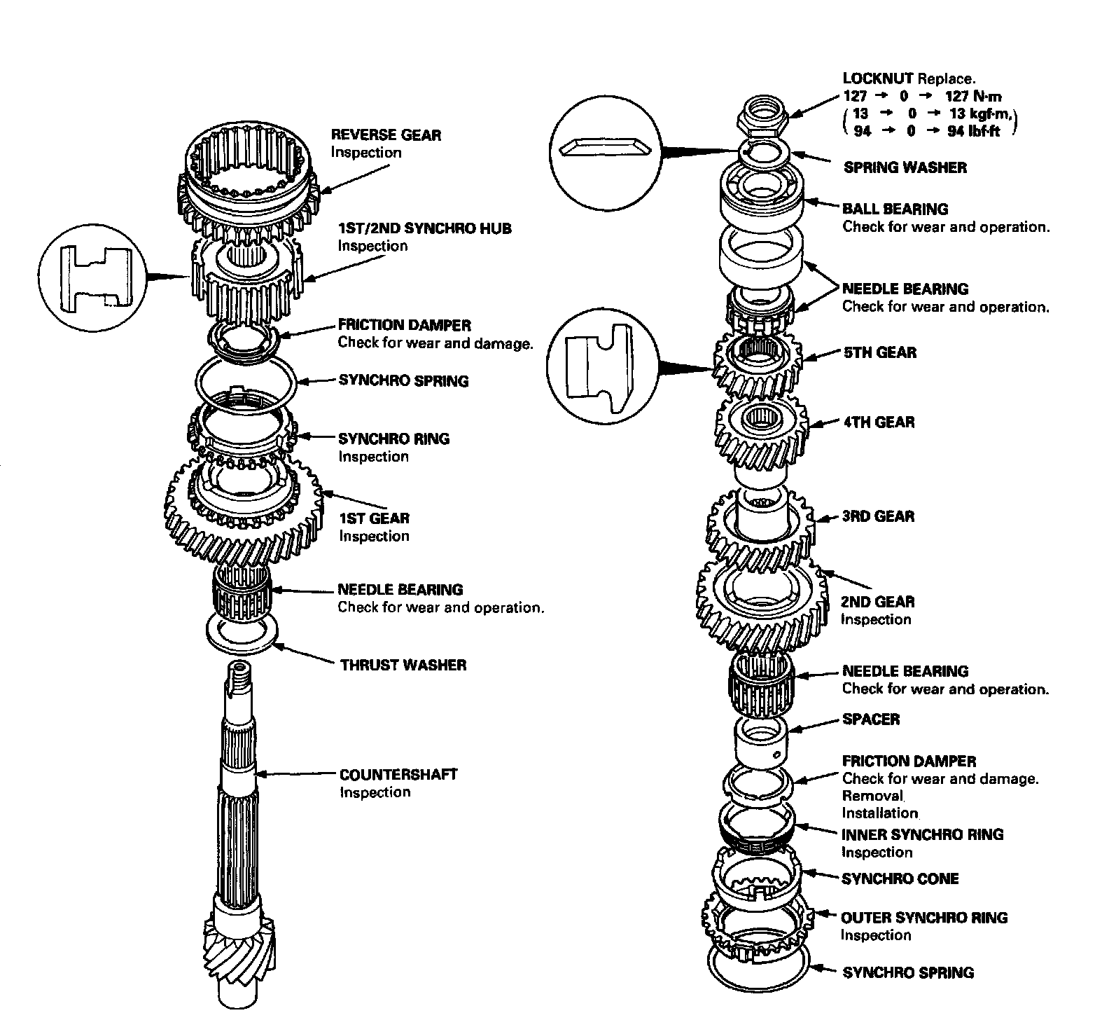 - The 3rd/4th, and 5th synchro hubs, and the ball bearing are installed with a press.