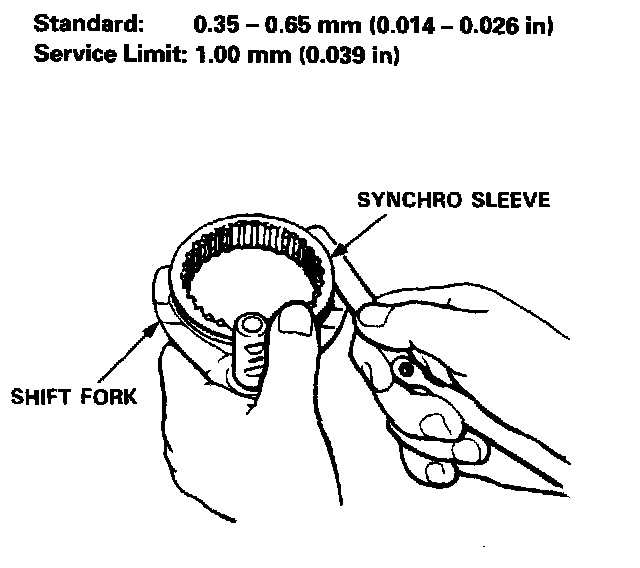 1. Measure the clearance between each shift fork and its matching synchro sleeve.