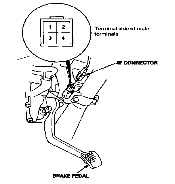 1. Disconnect the 4P connector from the switch.2. Remove the brake switch