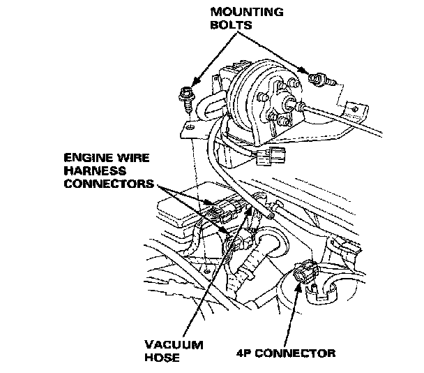 1. Disconnect the 4P connector from the actuator.2. Remove the engine wire harness connectors from the bracket.