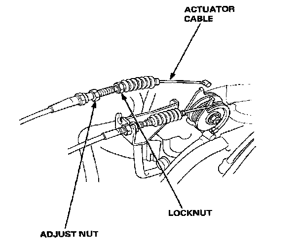 7. Loosen the locknut, then disconnect the actuator cable from the throttle linkage.