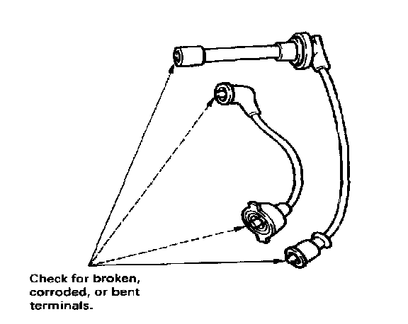 2. Check the condition of the ignition wire terminals. If any terminal is corroded, clean it, and if it is broken or distorted, replace the ignition wire.