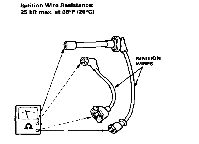 4. If resistance exceeds 25 k Ohm, replace the ignition wire.