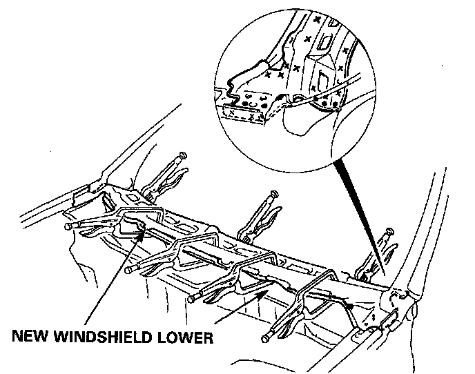 - Clamp the new windshield lower in place with visegrips and squill vises.