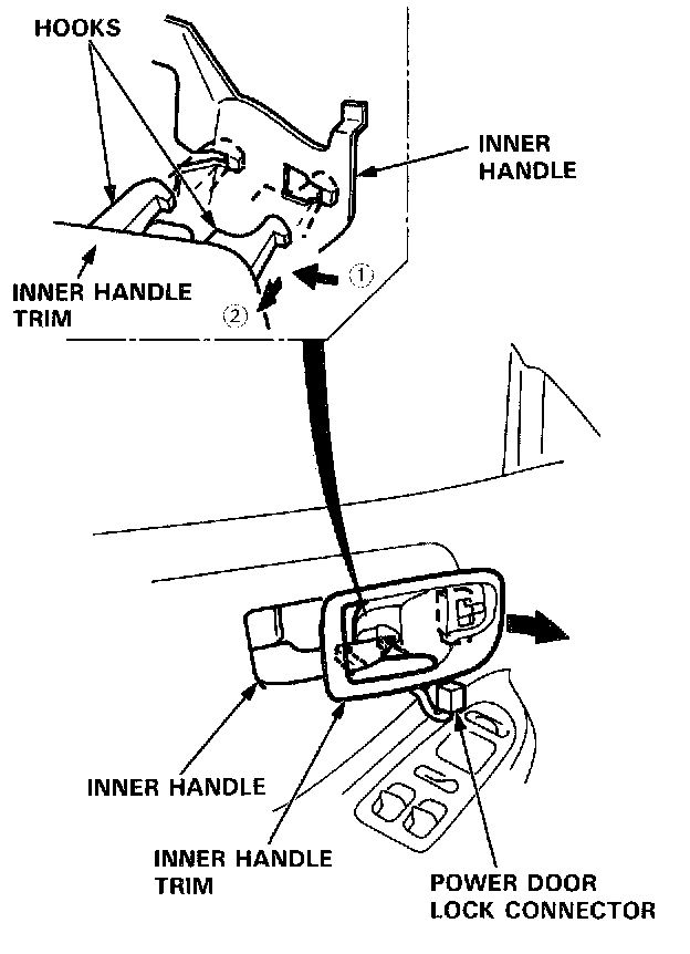 2. Remove the inner handle trim while pulling the inner handle. Disconnect the power door lock connector.