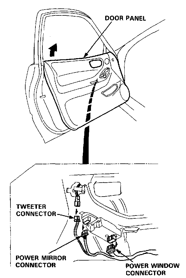 5. Remove the door panel .by pulling it upward. Disconnect the following: